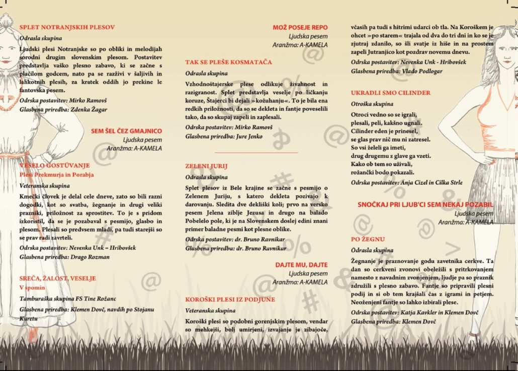 Folklorna skupina prireja letne koncerte, v katerih sodelujejo in se predstavijo vse tri sekcije skupine. Avtorji koncertov so člani Folklorne skupine Tine Rožanc pod vodstvom posameznih umetniških vodij. Organizacijo tovrstnih dogodkov, ki se najpogosteje odvijajo v ljubljanskem Cankarjevem domu, prevzame upravni odbor, s vsebino koncerta pa se spopade umetniški svet društva. Pregled preteklih letnih koncertov razkriva izjemno raznolike pristope poustvarjanja slovenskega ljudskega izročila, ki je odraz kreativnosti ter prizadevanja celotnega društva.